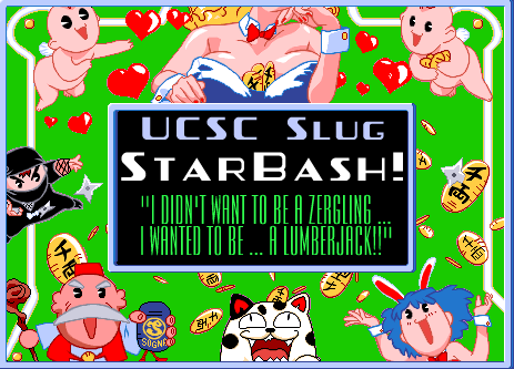 This little corner of the internet is dedicated to "Starbash", which ran for a couple of years at UCSC. Back before Blizzard cracked down on independent Battle.Net servers, a gang of my college friends and I ran our own, based on an open-source program called FSGS. We used it to enhance the games we played in the labs - group chat, win and loss tracking, that sort of thing. We combined it onto a CD with a cracked, modded, repacked version of Starcraft Broodwar, containing voice samples and extra maps. When inserted, the CD would auto-launch a program that killed the Windows NT password-protected screensaver on the lab computers, then run our custom installer, from which the game could be deployed. Yes, it was highly illegal, but we were already Starcraft fans, with the game installed on our personal machines. We just couldn't play in the labs without the custom installer. The lab computers were image-wiped every couple of days, so without the installer we'd have spent hours every time, installing first Starcraft, then Broodwar, then applying our mods, etc. This way, with everyone wielding a CD, it was about 10 minutes from entrance to first game.