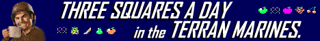 | The first of Breakpoint's parody ads for the Terran Marines. The small clip-art was stolen from the Apple II port of Ms. Pac-Man. |