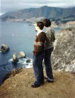 Recently, trips to nature have taken on a less urgent tone. My life is happier in general, and I tend to go to the beach with friends. Just a couple weeks ago my friends Garrett and Torrey and I decided to drive south from Santa Cruz, along the coast, to at least Big Sur and possibly further, and have a picnic along the way. While we were still in Santa Cruz County, I continued to write on my clipboard, but sometime after we passed Watsonville I set down my pen and put the clipboard away. I had usually driven north in the past, due to my attraction to San Francisco, and I'd only driven to Monterey once. (On that occasion, I had joked to my friends that I couldn't come into class that day because I was on a mission from God to get a great hamburger.) Familiar territory had receded into the past and all around was the glorious landscape I had nearly become blind to. All the coast of California is magnificent, glowing, beyond the human scale. Nature is not afraid to show her brute power against these cliffs, beaches and mountains; one is forced to acknowledge he is puny in the face of it, even if only subconsciously and in denial.