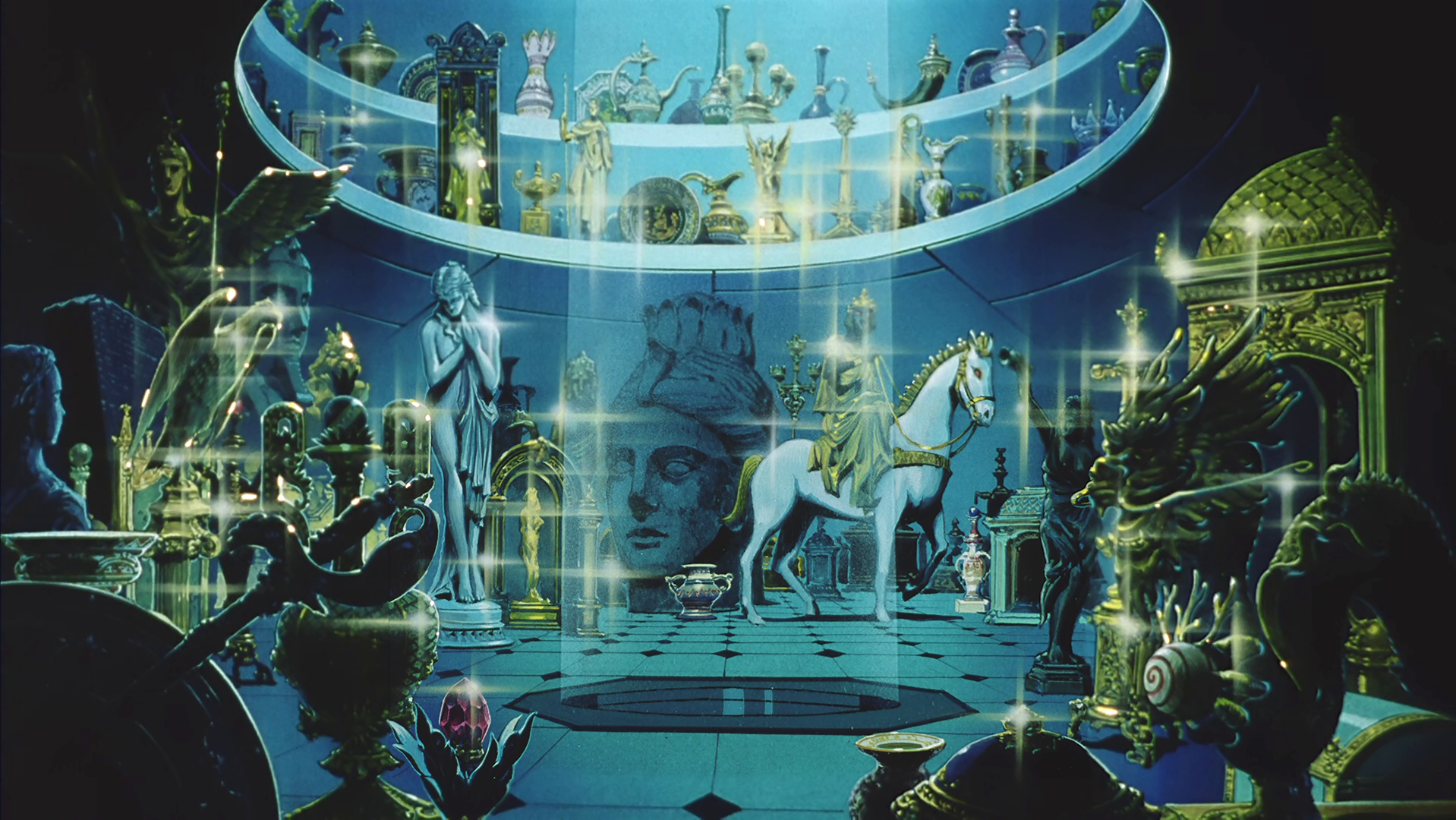 Treasure vault, composited from several shots, from Lupin III: Farewell to Nostradamus (1995).